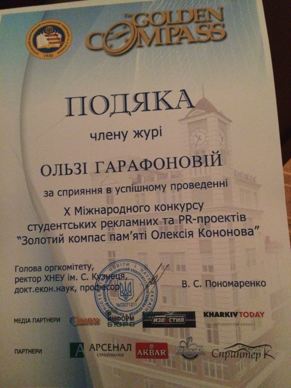 22 квітня 2016 року в Харківському національному економічному університеті імені С. Кузнеця відбувся фінал 10 міжнародного конкурсу студентських рекламних і PR-проектів "Золотий компас пам'яті Олексія Кононова".