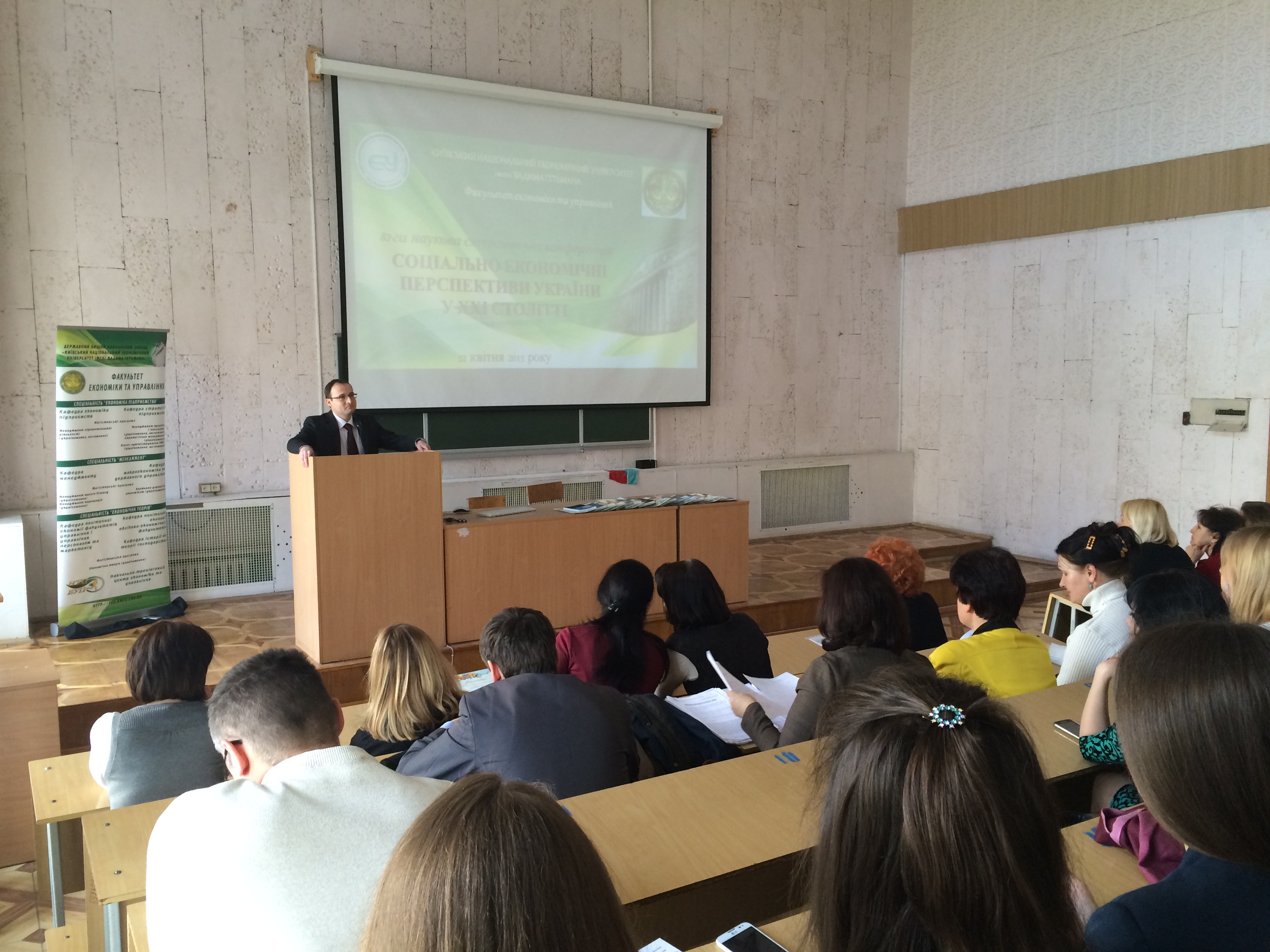 Пленарне засідання учасників студентської наукової конференції "Соціально-економічні перспективи України у ХХІ столітті"22 Квітня 2015р.![]() 22 квітня 2015 року відбулося пленарне засідання учасників щорічної студентської наукової конференції "Соціально-економічні перспективи України у ХХІ столітті". Учасників конференції привітали декан факультету економіки та управління О.В. Востряков та представниця компанії-партнера Л.М. Боровик, начальник департаменту начальник департаменту андерайтингу та методології ПрАТ «СК «Брокбізнес». Усі присутні мали можливість послухати найкращі доповіді: «Нові методи дослідження в контексті Євроінтеграції: презентація результатів соціального експерименту» - доповідачі: Тищенко Марія Петрівна, к.е.н., доцент кафедри політичної економії обліково-економічних факультетів та Румянцев Олександр, студент 4 курсу «Ціннісно-процесне управління проектами на підприємстві» - доповідач: Саричев Дмитро, аспірант кафедри стратегії підприємств (науковий керівник – Михайленко О.Ф., к.е.н., доцент кафедри стратегії підприємств) «Аналіз потенціалу нафтогазової промисловості як фактору енергонезалежності України» - Андрущенко Вікторія, Гнедько Катерина, студентки 4 курсу, спец. 6504, група ЕЕП-403 (науковий керівник – Рєпіна І.М., д.е.н., професор кафедри економіки підприємств) «Правила фіскальної політики: результативність виконання в Україні» - Лось Валерій, студент 5 курсу, спец. 8601/2, група ЕДУ-502 (науковий керівник – Усик В.І., к.е.н., доцент кафедри макроекономіки та державного управління) Переможці та дипломанти отримали свої нагороди. Фотозвіт про пленарне засідання Вітаємо студентську наукову спільноту факультету економіки та управління! |